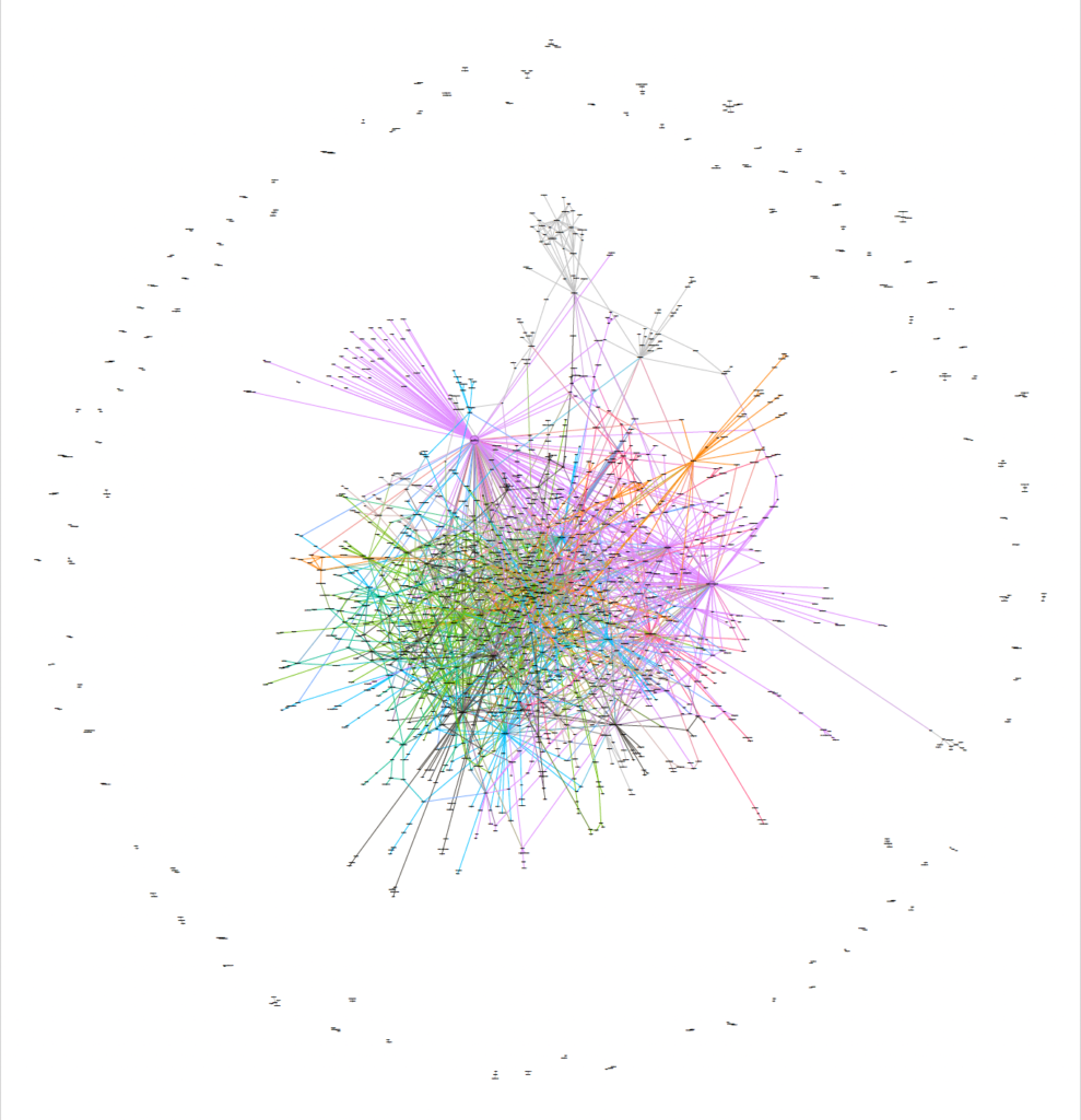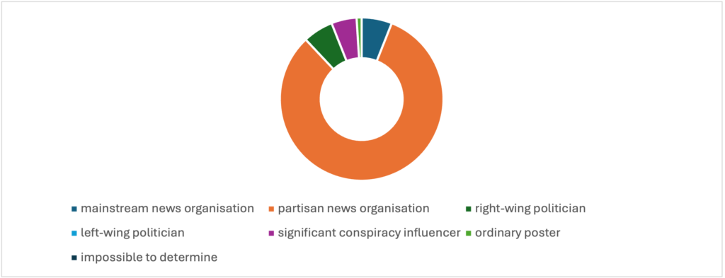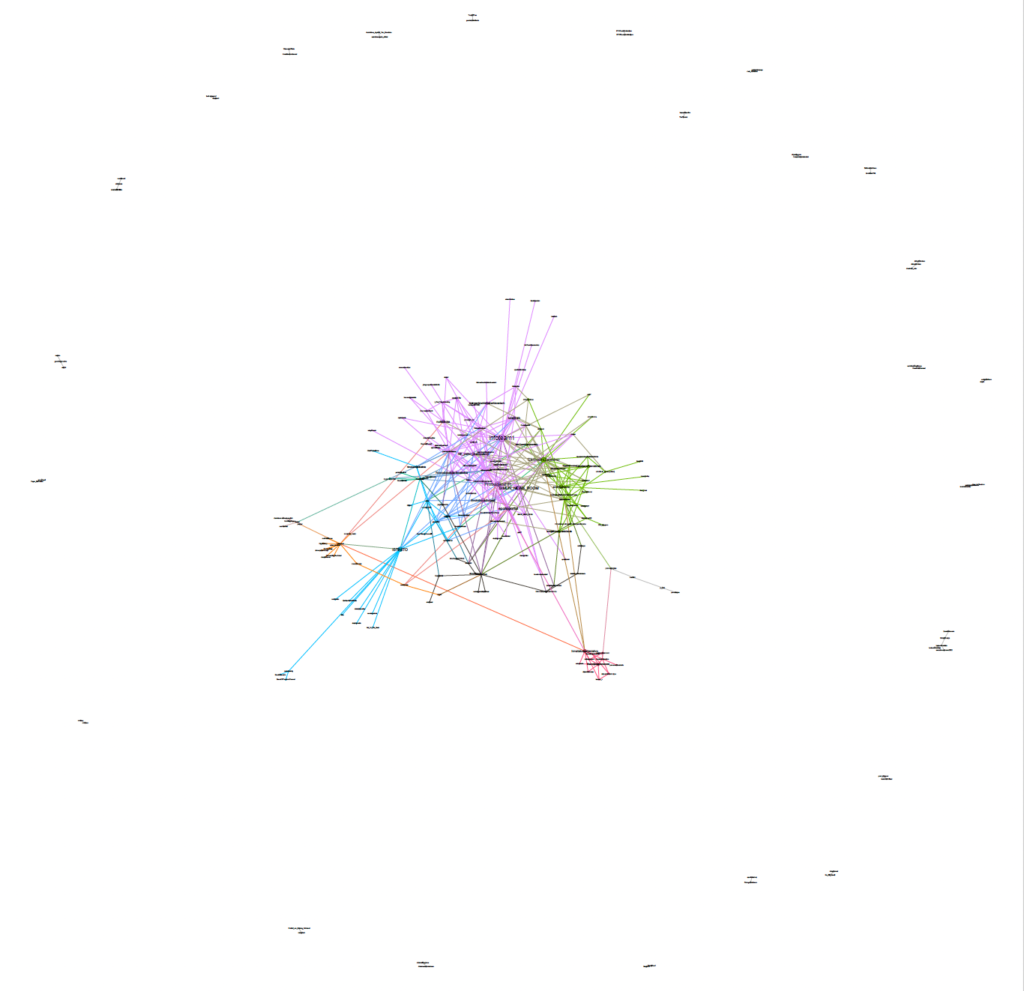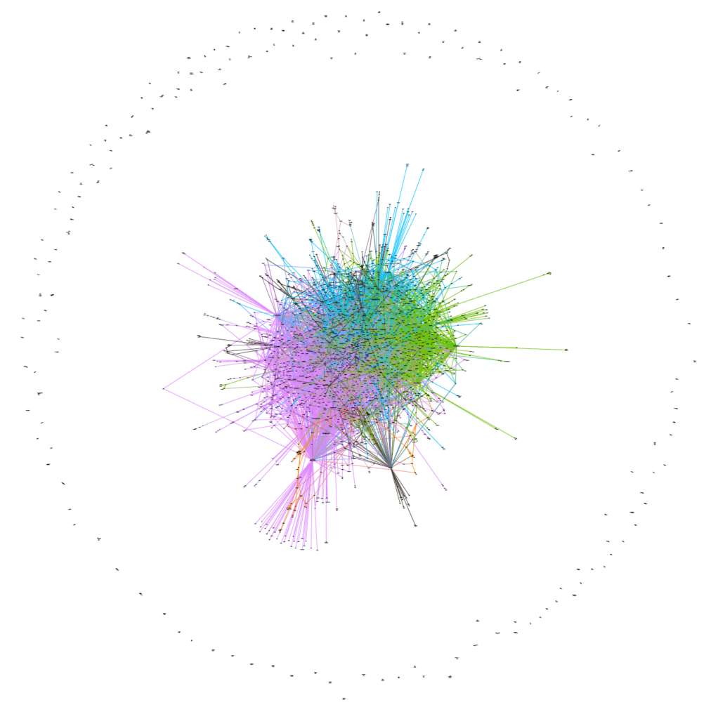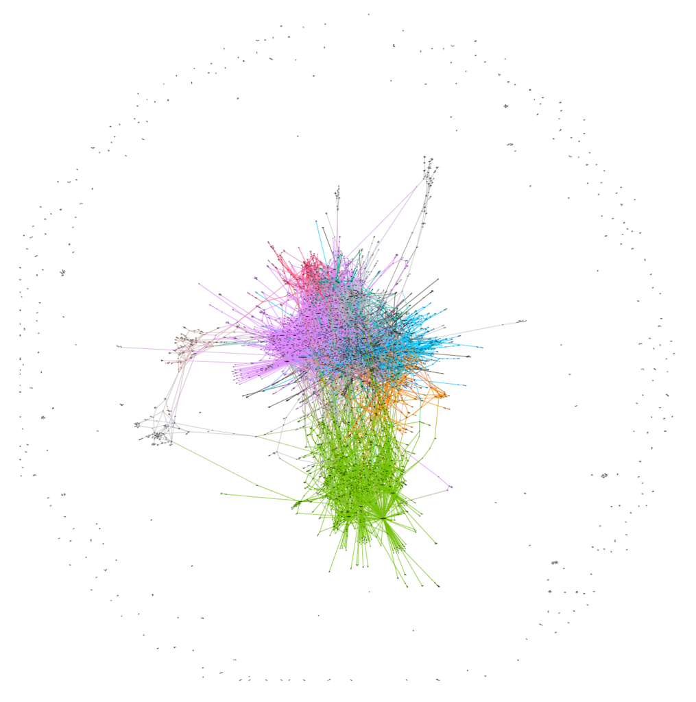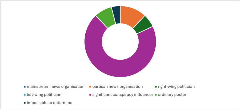 Figure 2.11 Conversation network visualisation of influencer accounts for QAnon conspiracy theories on Telegram in the UK.