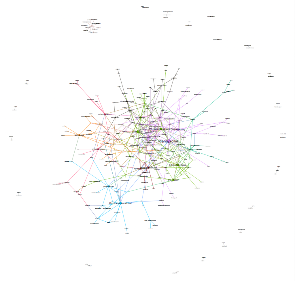 Figure 2.13 Conversation network visualisation of influencer accounts for all topics on combined Telegram dataset for Slovakia.