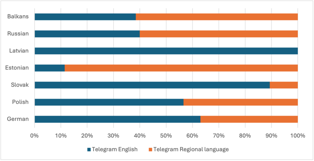 Figure 2.15 Comparison table of local vs English language uses of the term ‘deep state’ on Telegram.